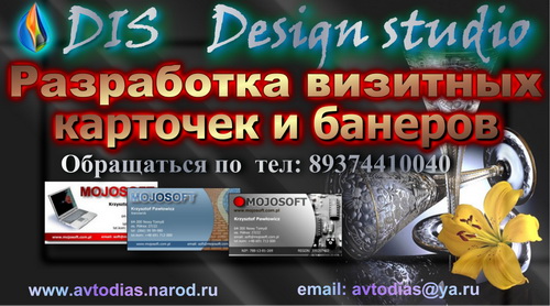 На нашем сайте вы можете заказать разработку визитных карточек и банеров, наши дизайнеры разработают уникальный дизайн для ваших визитных картНАШИ РАБОТЫ![]() ![]() ![]() |